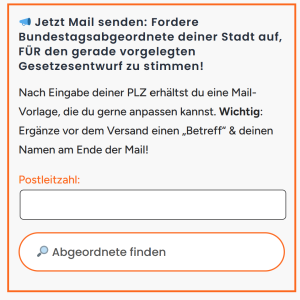 Jede Stimme zählt. Wer die Forderung unterstützen will, kann daher eine E-Mail an die Bundestagsabgeordneten aus der eigenen Region schicken.