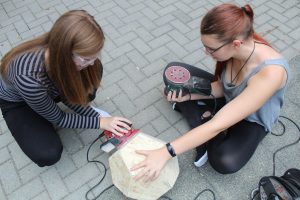 Souverän präsentierten sich die jungen Frauen der Presse, beantragten Fördergelder, um selbstdesignte Buttons und Festivalbändchen für die erfolgte Wahlteilnahme auszuhändigen und warben bei Schulen, Lehrerschaften und freien Trägern um deren Beteiligung. Nebenher wurden dann noch die Wahlhelferinnen-T-Shirts sprachlich „gegendert“ und umgestaltet, eine Wahlurne in Form eines Dodekaeders in der Werkstatt gebaut, Videoclips gedreht und Plakate und Banner angefertigt – ein wahrer Sturm der Beteiligung hinter der Wahlurne.