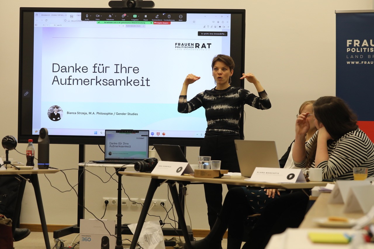 Zuletzt möchten wir allen Teilnehmer:innen für den regen Austausch und die aktive Beteiligung danken sowie der Staatskanzlei Brandenburg für die Projektförderung zur Finanzierung des Projektes „Antifeminismus in Brandenburg – Gegenstrategien und Empowernment“ im Rahmen des Handlungskonzeptes „Tolerantes Brandenburg – für eine starke und lebendige Demokratie“, welche die Umsetzung des öffentlichen Teils der Mitgliederversammlung ermöglichten.
