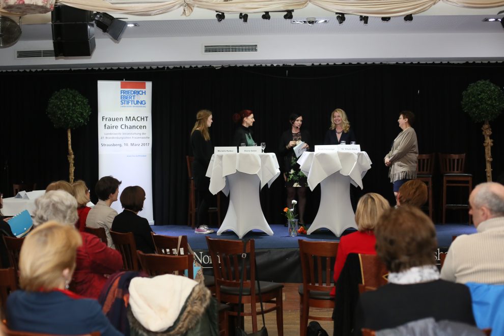 Die 120 Teilnehmer_innen kritisierten in Strausberg, dass Politik immer noch mehrheitlich von Männern gemacht wird. Im Deutschen Bundestag und im Landtag Brandenburg ist nur jedes dritte Mitglied weiblich. In Stadt- und Gemeinderäten ist gegenwärtig nicht einmal ein Viertel der Sitze von Frauen besetzt. Die Tendenz ist sogar sinkend. (aus der FPR-Pressemitteilung zur landesweiten Veranstaltung vom 10. März 2017)